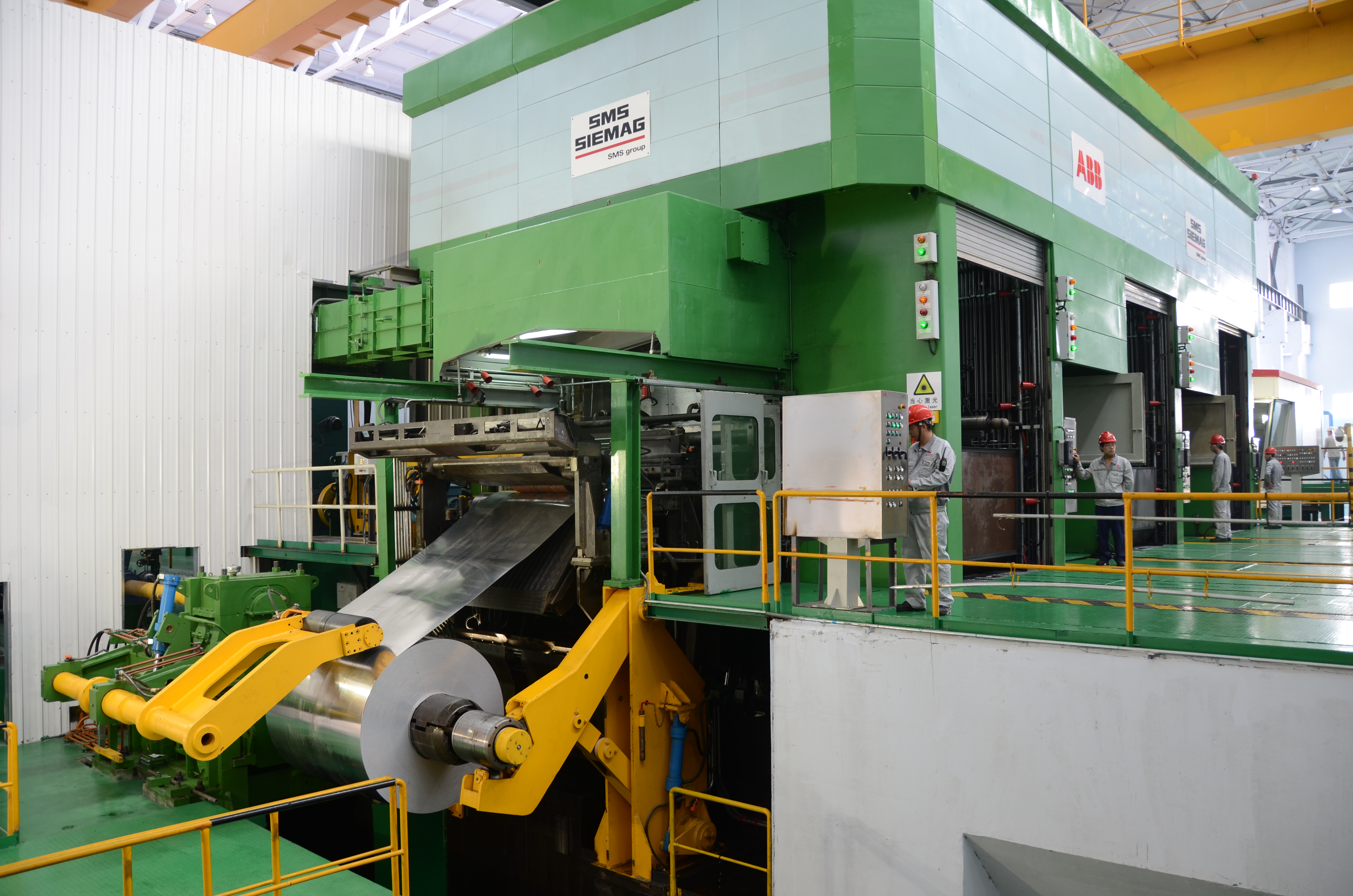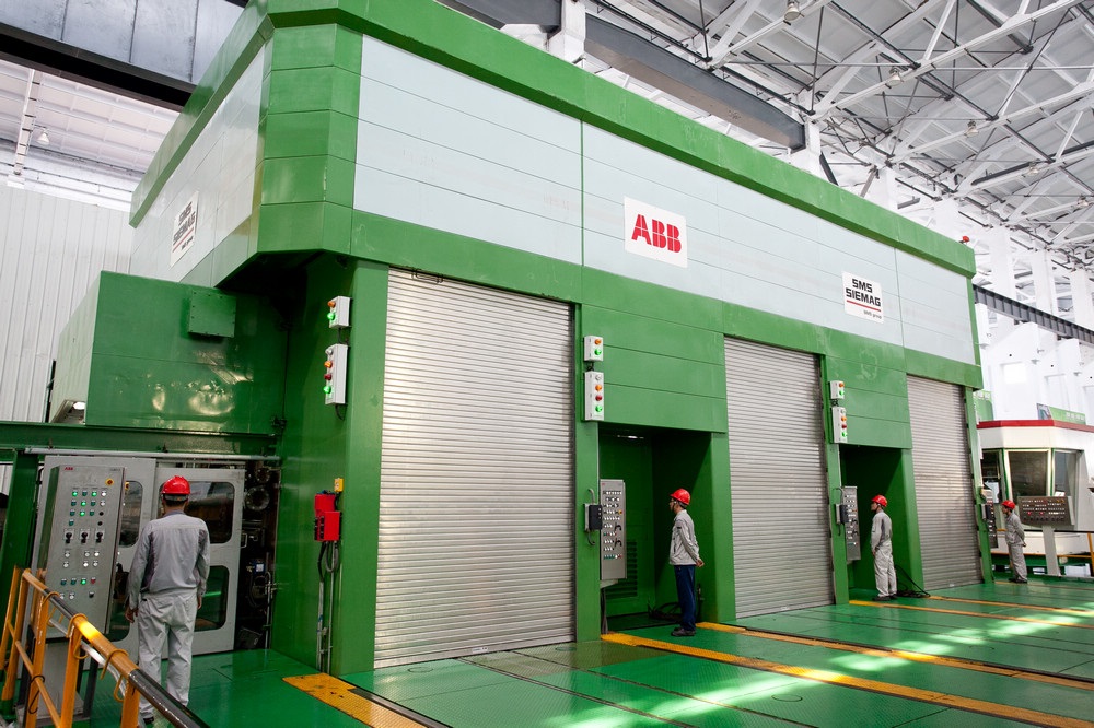 冷軋廠主體設(shè)備包括2臺(tái)單機(jī)架CVC-6輥冷軋機(jī)、1臺(tái)三機(jī)架CVC-6輥冷連軋機(jī)。冷軋機(jī)機(jī)組由德國(guó)西馬克(SMS)公司和瑞典ABB公司聯(lián)合制造,設(shè)備裝機(jī)水平達(dá)到世界最先進(jìn)水平。主要生產(chǎn)1xxx、3xxx、5xxx、8xxx系鋁合金,主要產(chǎn)品為罐體料、罐蓋料與鋁箔坯料,機(jī)組最高速度1800m/min,最小產(chǎn)品厚度0.1mm,最大產(chǎn)品寬度2100mm,最大產(chǎn)品卷徑2800mm、最大板帶材重量30噸。三連軋為國(guó)內(nèi)引進(jìn)的第一條最先進(jìn)的鋁板帶冷連軋機(jī)組。