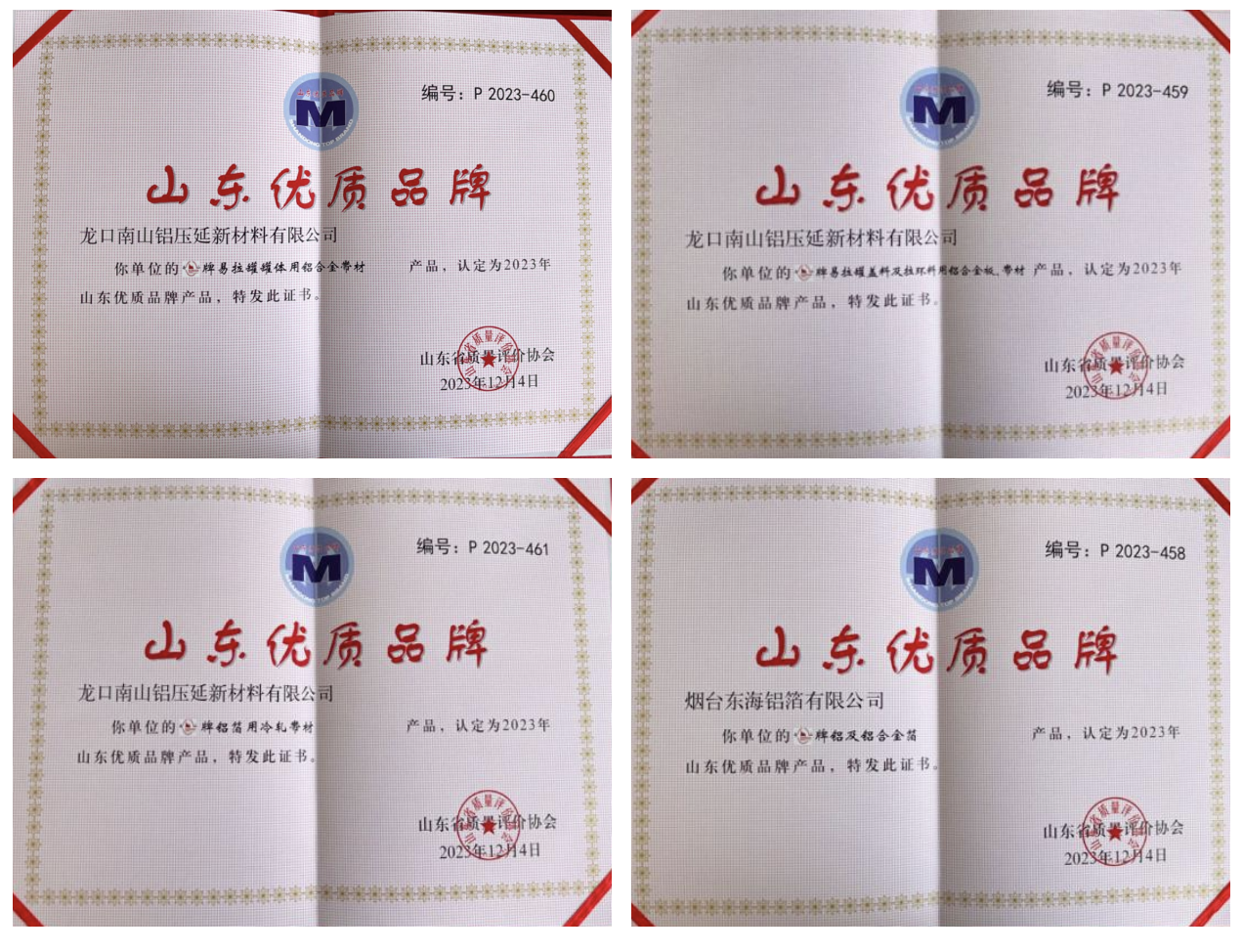 其中,南山鋁業(yè)被山東省質量評價協(xié)會評定為山東省優(yōu)質品牌的產品有:“南山牌易拉罐罐體用鋁合金帶材”“南山牌易拉罐蓋料及拉環(huán)料用鋁合金板、帶材”“南山牌鋁箔用冷軋帶材”及“南山牌鋁及鋁合金箔”等。