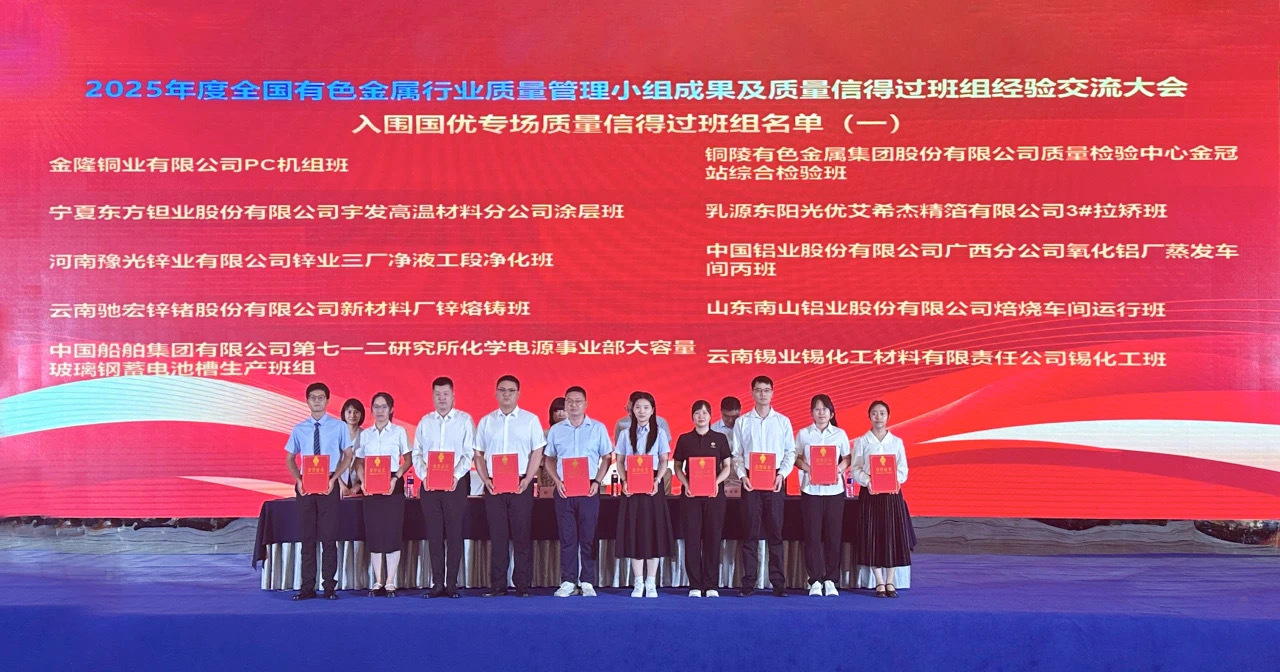 近日,中國(guó)有色金屬工業(yè)協(xié)會(huì)組織召開2025年度全國(guó)有色金屬行業(yè)質(zhì)量管理小組暨質(zhì)量信得過班組經(jīng)驗(yàn)交流大會(huì)。龍口東海氧化鋁有限公司焙燒車間運(yùn)行班憑借《守工匠之心創(chuàng)一流品牌》的主題成果,榮獲“全國(guó)優(yōu)秀質(zhì)量信得過班組”特級(jí)班組。