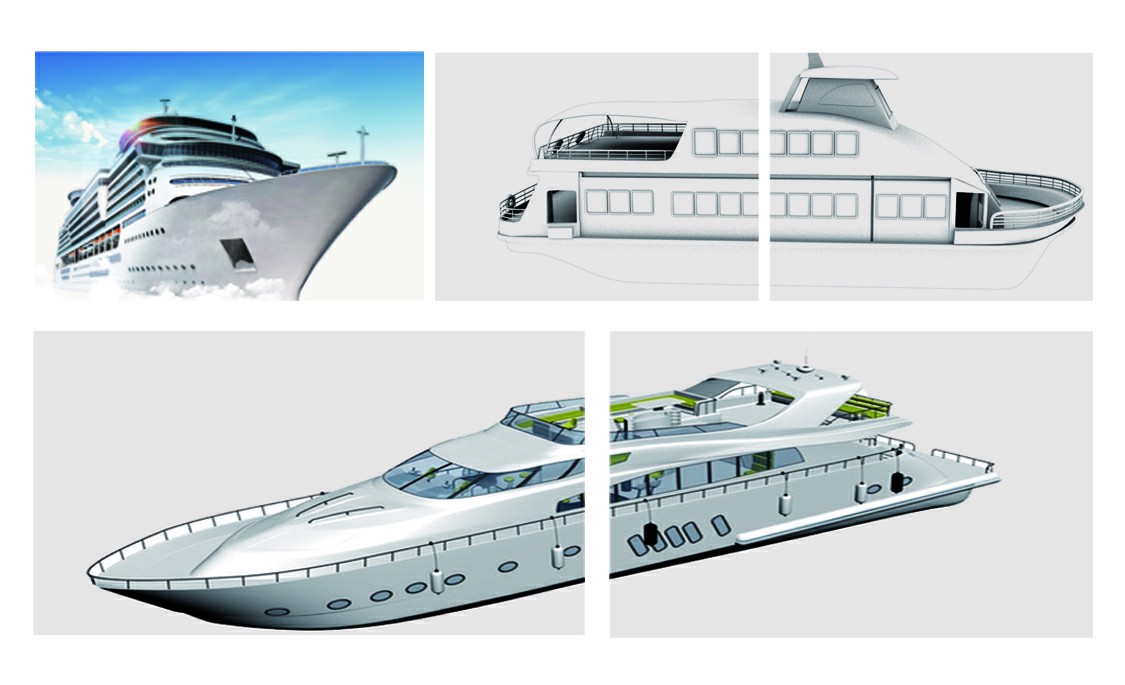 船側(cè)、船體外板、龍骨、肋骨、甲板、發(fā)動機(jī)臺座等。